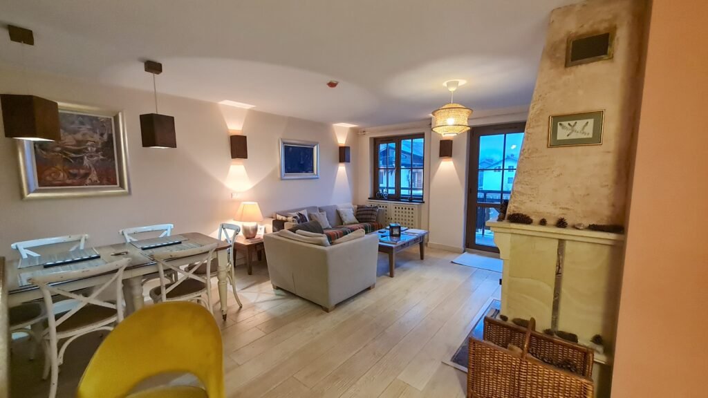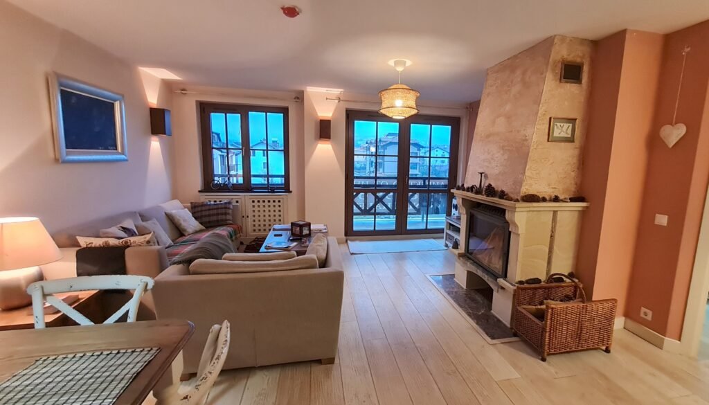 A spacious and cosy 100.38 m² two-bedroom apartment is available for both short- and long-term rent in the prestigious Grand Chalet Bohème complex in Bansko. The apartment boasts a generously proportioned open-plan kitchen and living area, elegantly furnished with high-quality furniture and modern fittings, creating a bright and welcoming atmosphere. Both bedrooms are comfortable and thoughtfully designed, offering ample space and privacy, making the property ideal for families or groups of friends. A charming south-facing balcony provides stunning mountain views, perfect for relaxing at any time of day. Heating is provided by a gas-powered system with water radiators, complemented by a warm and inviting fireplace for cosy winter evenings. Rental rates vary depending on the length and season of your stay. Parking is available upon request. Grand Chalet Bohème is one of Bansko’s premier residential complexes, combining alpine comfort and style with a peaceful and convenient location.
