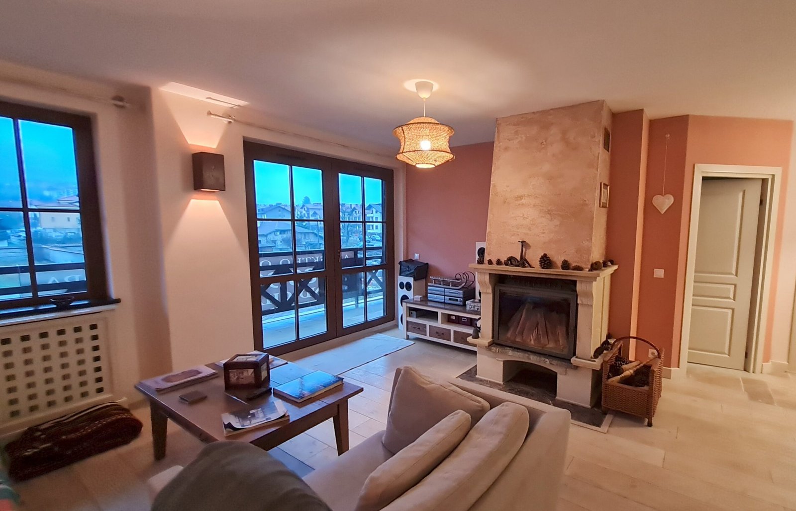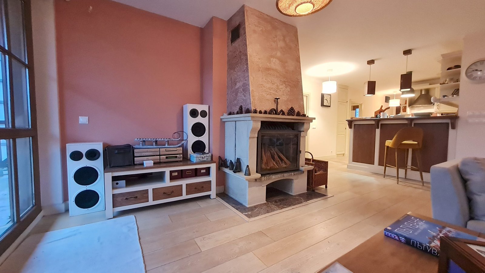 • Beautiful real log burning fireplace