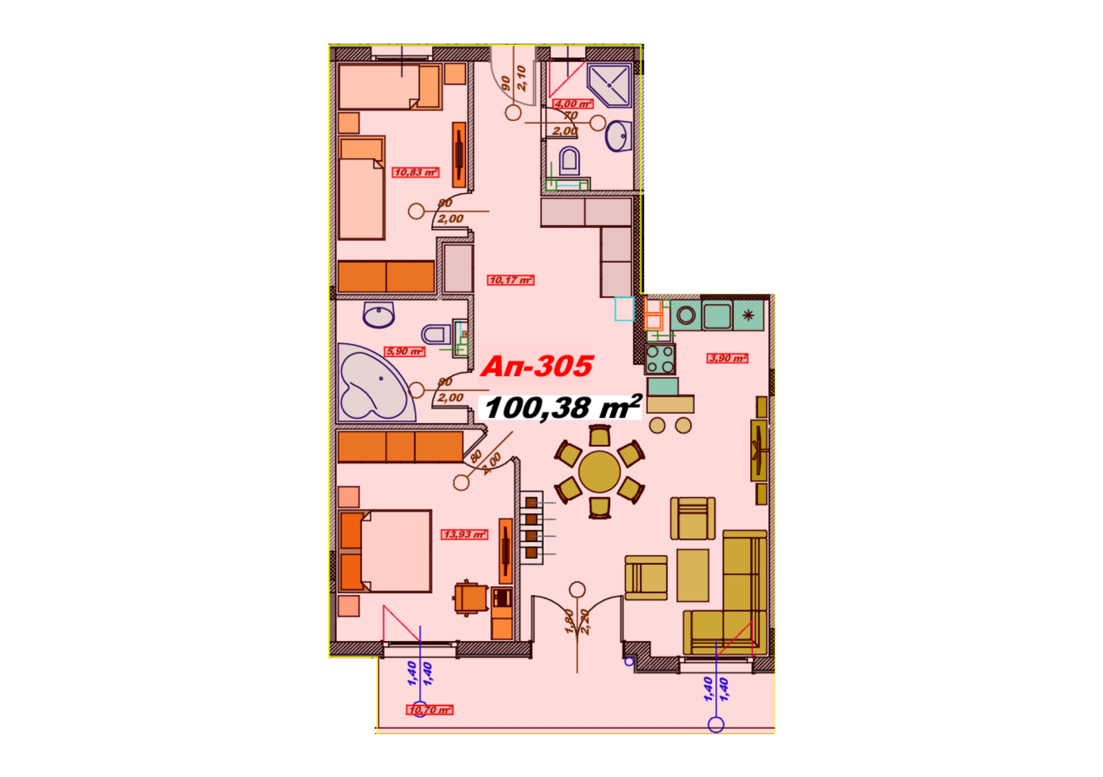 • Area: 100,38 m²