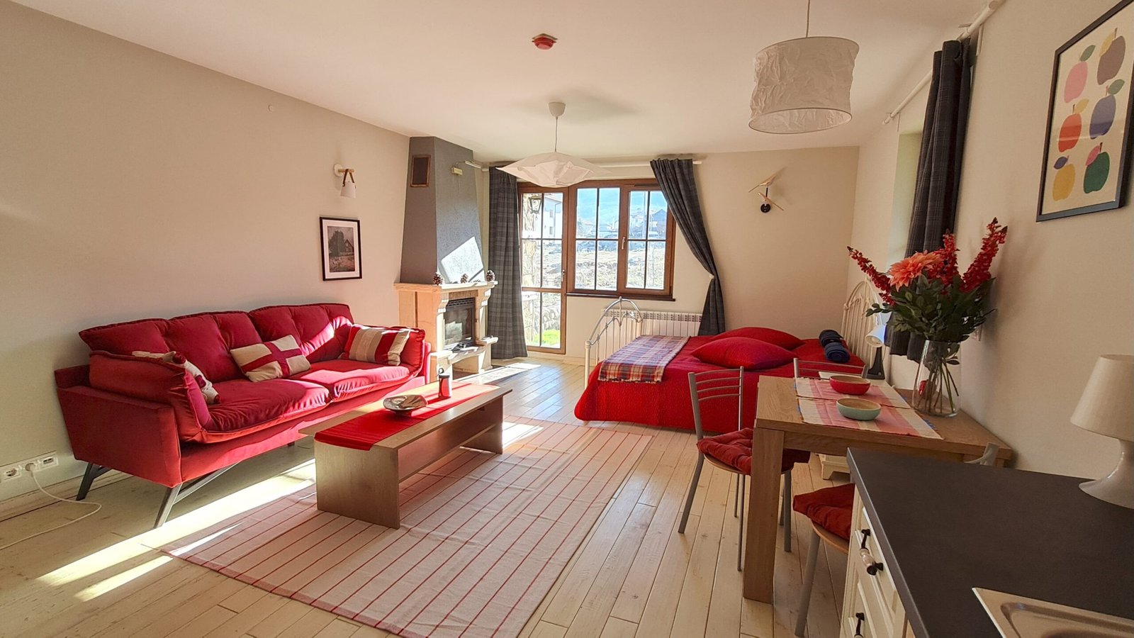 A spacious and cosy 58,60 m² studio apartment is available for both short- and long-term rent in the prestigious Grand Chalet Bohème complex in Bansko. The studio is newly furnished with elegant, high-quality furniture and modern fittings, creating a refined yet welcoming atmosphere. The intelligently designed layout maximises space and comfort, making it ideal for couples or solo guests seeking a relaxing mountain retreat. Step out onto the charming south-facing terrace and enjoy breathtaking mountain views. During the colder months, the gas-powered heating system with water radiators ensures consistent warmth, perfectly complemented by a cosy fireplace for those inviting winter evenings. Rental rates vary depending on the length and season of your stay. Parking is available upon request. Grand Chalet Bohème is one of Bansko’s premier residential complexes, combining alpine comfort and style with a peaceful, convenient location.